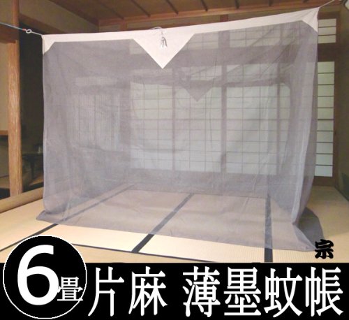 日本製 奈良の特産 国産蚊帳 片麻 6畳用 洋室にも合う粋な色薄墨(グレー) 6帖用【吊り手無料サービス】