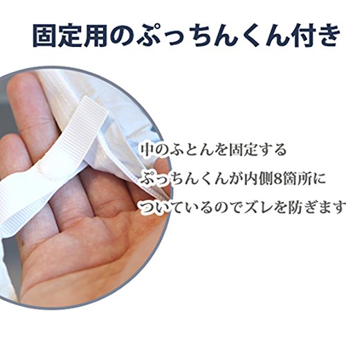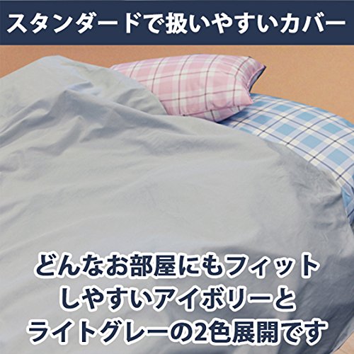 スタンダートなツイルカバー 柔らかく、軽いのにしっかりした使い心地が特徴的です。 カバーを固定する「ぷっちんくん」がついているので、商品がズレたりヨレる心配がありません。また、片側全開のファスナーが付いているので、取り外しもラクラク! アイボリー・ライトグレーの選べる2色展開となっています。