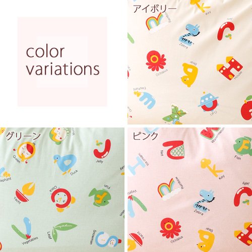 生地の染めから縫製まですべての工程を国内で加工した使って安心のお昼寝敷き布団カバー。えいご柄が新登場!もちろんお子様の肌にやさしい綿100%。吸湿性抜群!耐久性も◎ オリジナル規格サイズ『75×128cm』