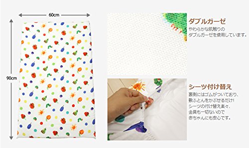 はらぺこあおむしがとっても鮮やかなカラーでプリントされたダブルガーゼ生地を使用したミニサイズのベビーフィットシーツです。