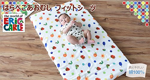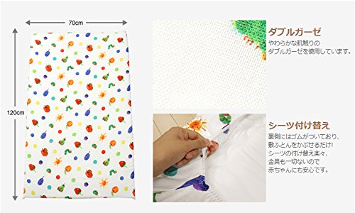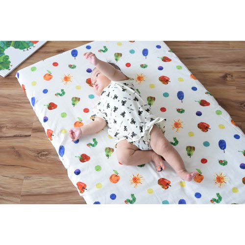 はらぺこあおむしがとっても鮮やかなカラーでプリントされたダブルガーゼ生地を使用したベビーフィットシーツです。