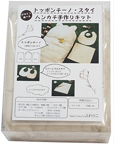 ふわりこ くまちゃんトッポンチーノ・スタイ・ハンカチ手作り3点キット オフホワイト オーガニックコットン k-001