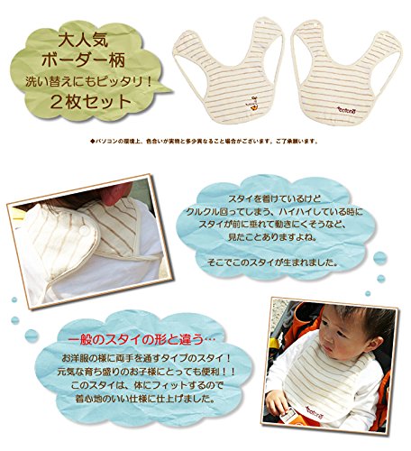 ぷらすことーね オーガニックコットンボーダーガーゼスタイ2枚セット 日本製