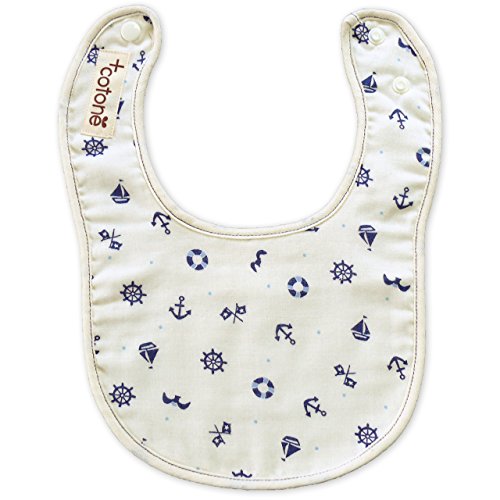 ぷらすことーね 3重ガーゼ&パイル!ナチュラルマリン柄リバーシブルスタイ 日本製 (ブルー)