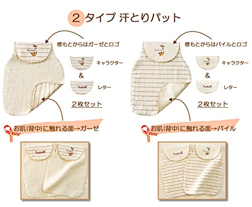 ぷらすことーね オーガニックコットンボーダーガーゼ汗とりパット2枚セット 日本製 (表ガーゼ)
