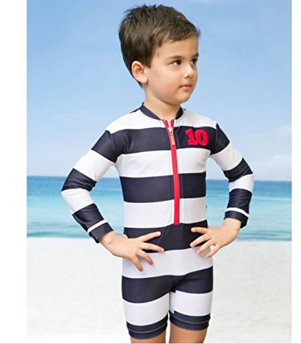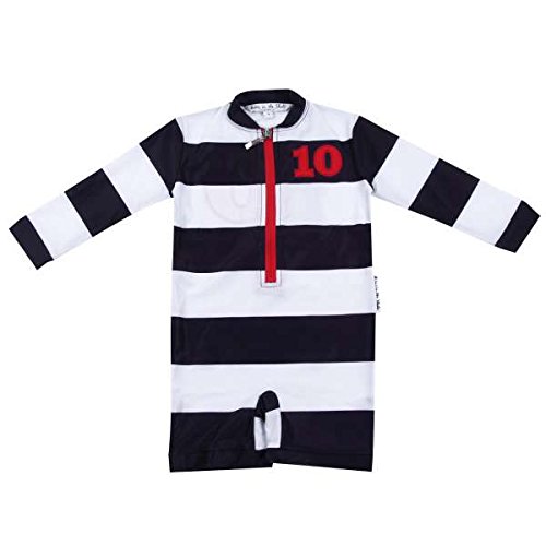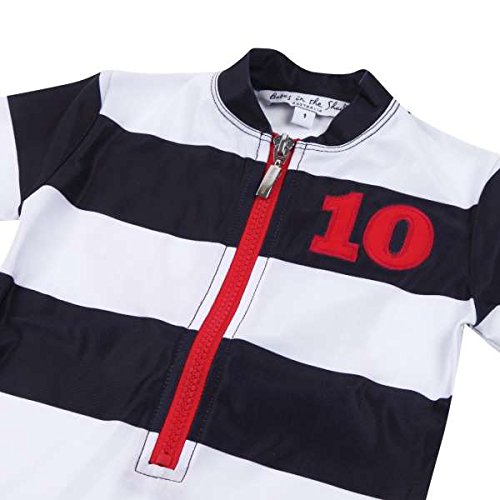 べイブズ・イン・ザ・シェイド (Babes in the Shade) ベビー ラッシュガード パンツスーツ 水着 ロンパース 90 2歳 - 3歳 紺 白 ボーダー