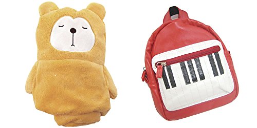 ピアノ鍵盤ミニリュック と なまけぐまブランケットのセット (レッド)