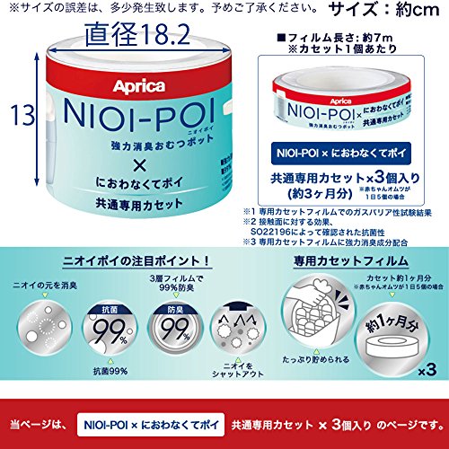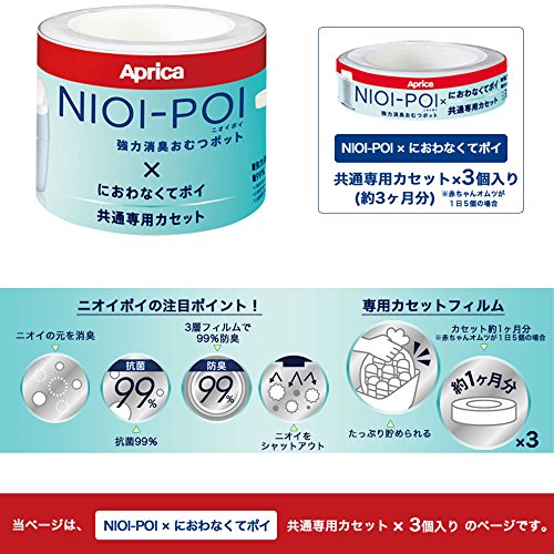 - ※こちらは、「Aprica〔アップリカ〕 NIOI-POI×におわなくてポイ」の共通専用取り替え用カセット×3個入りです。