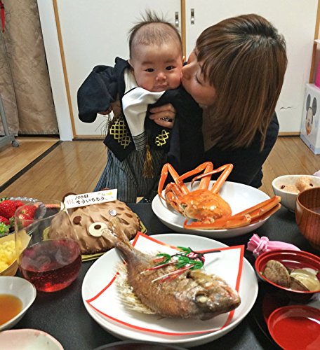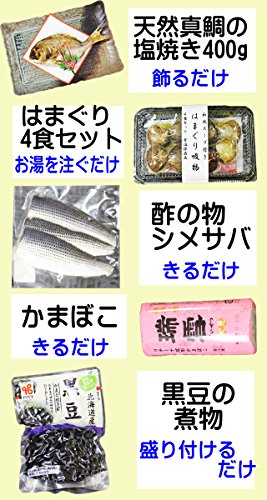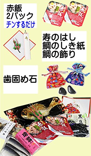●祝い鯛 約400g(約28cm) 真鯛の重さは水揚げ後の重さの表記となっています。 焼き上がりの重さとは異なります。 ●敷き紙、お飾り、寿のはし ●蛤(はまぐり)吸い物(4人前) ●かまぼこ1個180g ●赤飯(2パックメーカーが変わる場合がございます) ●酢の物(コハダ酢漬け約100g) ●黒豆煮200g ●歯固め石
