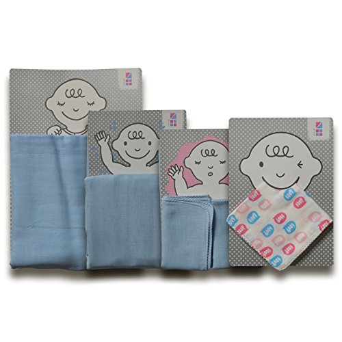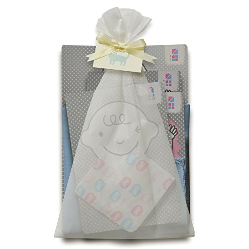 めんぷます田 【ギフトセット】 フルセット ケット:生まれた! (ブルー)+湯上り/沐浴:あおぞら色+ハンカチ:ありがとう! (ブルー)