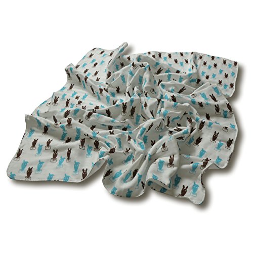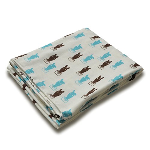 めんぷます田 赤ちゃんのガーゼケット 生まれた! (ブルー) 85×110cm 綿100% 日本製