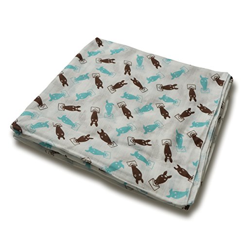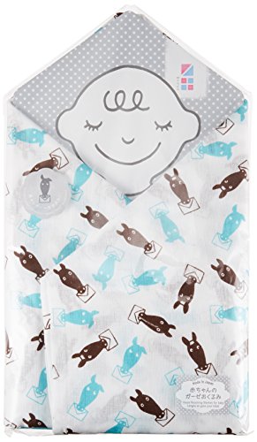 めんぷます田 赤ちゃんのガーゼおくるみ 生まれた! (ブルー) 120×120cm 綿100% 日本製