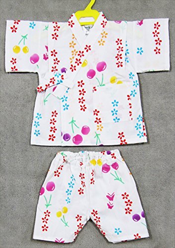 女児甚平0才1才 kjb-3 チェリー柄・白地