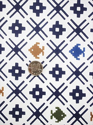 ベビー甚平生地 (3.8m) No.751 タスキ・魚柄・白地