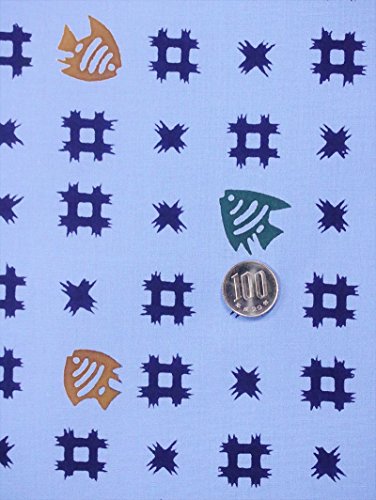 ベビー浴衣生地(3.8m) No.718 さかな柄・水色地