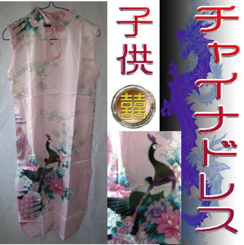 子供チャイナドレス ピンク地鳳凰柄 (2号)