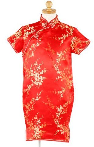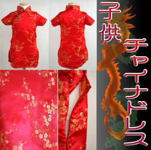 子供チャイナドレス 赤地金色梅柄 (2号)