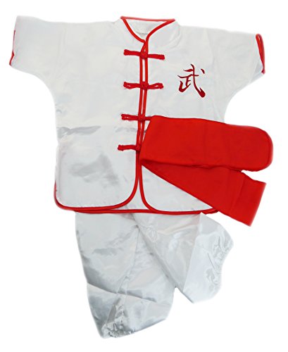 子供用チャイナカンフー着 サテン 白 上下セット 120