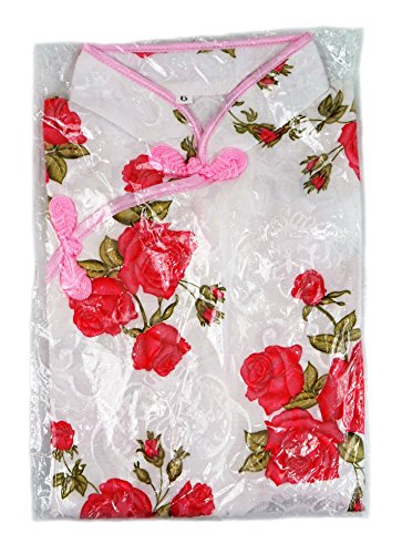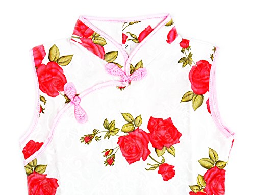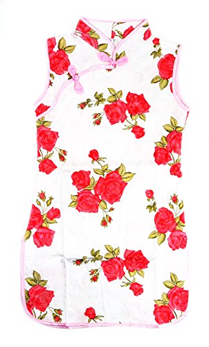 子供チャイナドレス 白地赤バラ柄 6号