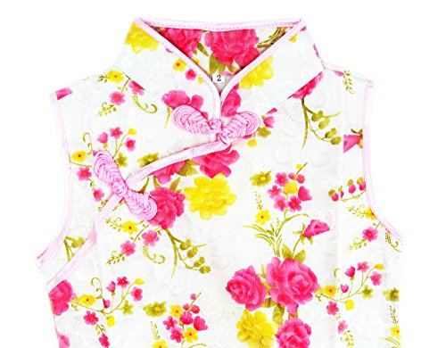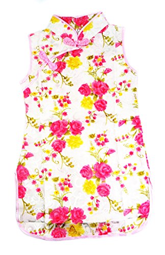子供チャイナドレス 白地桃黄バラ柄 12号