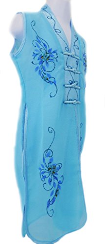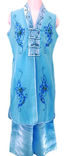 子供アオザイ ベトナム 民族 衣装 前開き 襟付き 袖なし パンツ付き 青6号