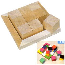 キューブ:40x40x40mm9個材質:シナ材、トレー裏ベニヤ(MDF)トレー:外寸163x163x20mm9個の立方体にデザインをして、組み合わせを楽しむパズルです。キューブの6面を使って、いろいろな遊びができます。 区分:小学生の工作5・6 小学生の工作