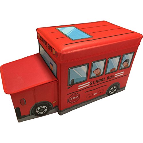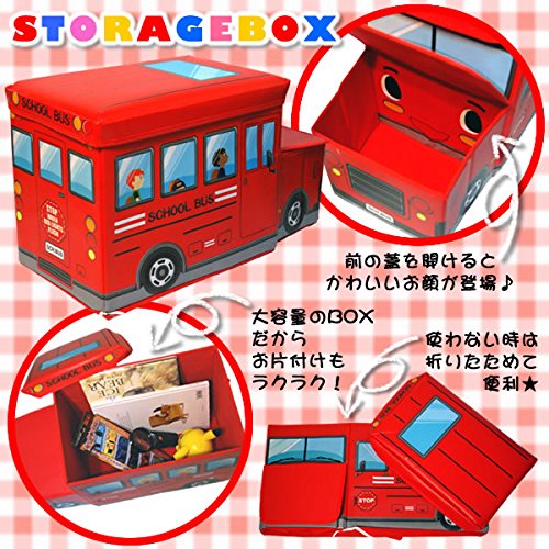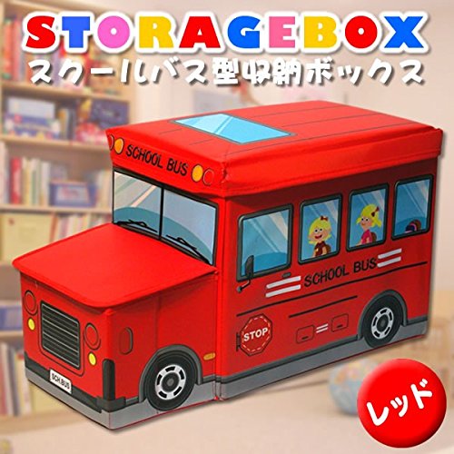 スクールバス型 収納ボックス おもちゃ箱 座れる ストレージボックス レッド