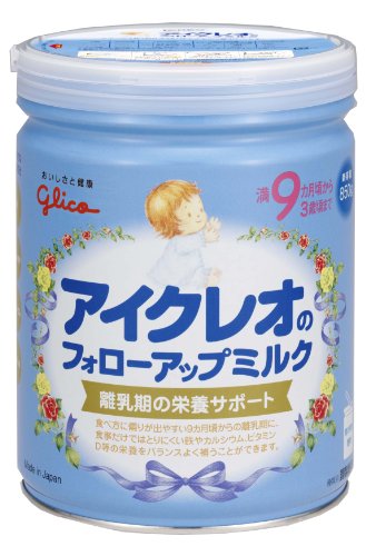 「アイクレオのフォローアップミルク850g」は、満9か月頃から3歳頃までのお子さまのための粉ミルクです。鉄、カルシウム、ビタミンD等の不足しがちな栄養素を豊富に含んでいます。母乳に含まれる乳糖を使用しているため母乳に近いあっさりした甘さで、毎日飲んでも飽きないよう、おいしさにこだわりました。