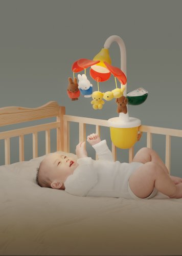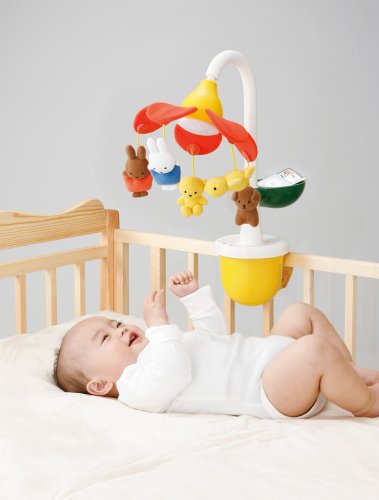 サイズ: フロアメリー時:W300*L440*H562mm ベッドメリー時:W250*L400*H505mm かわいいミッフィーの仲間たちのマスコットが付いたメリーです。