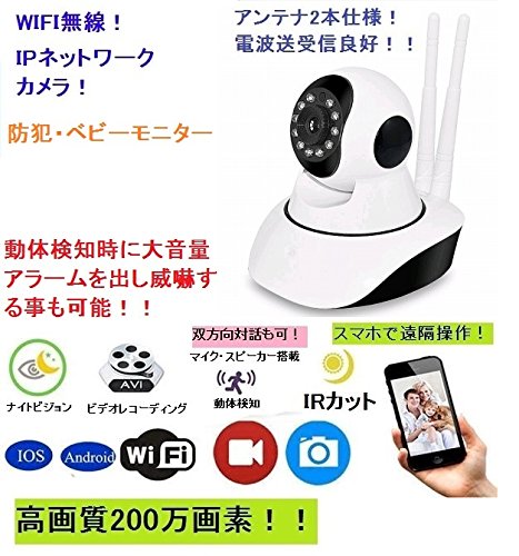 ★限定特価★スマホ 遠隔操作!最新 200万画素 WIFI ネットワーク カメラ A2!動体感知時に大音量アラームを出し威嚇も可能!防犯対策 介護 ベビーモニター!感度良好アンテナ2本仕様!!