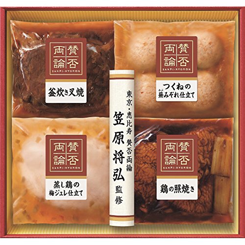 - 【商品詳細】■東京 恵比寿にある日本料理店「賛否両論」。店主の笠原将弘氏が監修したこだわりの和食ギフトです。笠原将弘氏監修の和食4品の詰め合わせ。湯煎で調理も簡単。[商品内容]●賛否両論(釜炊き叉焼180g・蒸し鶏の梅ジュレ仕立て150g・つくねの蕪みぞれ仕立て200g・鶏の照焼き160g)[お届け状態]冷凍[賞味期間]182.5日[7大アレルゲン]卵、乳、小麦[箱サイズ]幅26×奥行27×高さ5