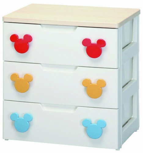 キャラクター(ミッキー)が付いた木天板付きチェストです。おむつや衣類など子供の成長に合わせて使用できます。引出しには開閉がスムーズなスライドレールを採用しています。取っ手はかわいらしいデザインで、子供でも握りやすい大きさです。