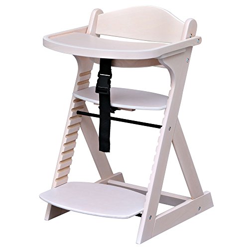 ベビーチェア テーブル付き 木製椅子 ハイチェア 14段階調節可能 ベビーガード 安全ベルト付き 幅49×奥行57×高さ80cm ホワイトウォッシュ