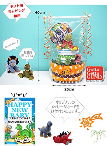 - 出産祝いベビーギフト!GUNDbabyガンドベビーのおむつケーキ! ダイナソーのヌイグルミ(GUND)ガンド 男の子用オムツケーキには大好きな恐竜シリーズのぬいぐるみラトル♪ お腹を押すと「ギャオー・ギャオー」と叫びます♪ 赤ちゃんにとってもうれしい実用的な出産祝いとなっております