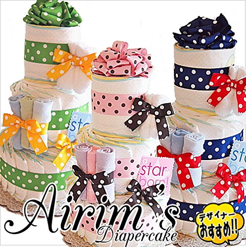 大好評により日本テレビ「ヒルナンデス!」で紹介されたおむつケーキ! たくさんのリピーターのお客様よりご要望いただいておりました。フレーバーおむつケーキの3段ヴァージョンが完成いたしました。 シンプルでエレガントさらに豪華になったワンランク上のおむつケーキ♪ 7色で新登場!! 紙おむつ(パンパース)の枚数が多く、上品なデザインでかわいいと評判の出産祝いギフト! 当店のダイパーケーキデザイナー自慢の作りの綺麗さは先方様にも喜んでいただけます。相手の好み等気にせずに贈れるオムツケーキギフトです。 迷ったらこのおむつケーキで決まり!!! 自信を持ってオススメしております。