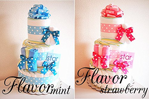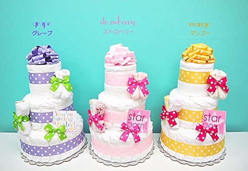 おむつケーキ!出産祝いギフト3段おむつケーキ「フレーバー」新登場! (Sサイズ(約2~5ヶ月), ストロベリー)