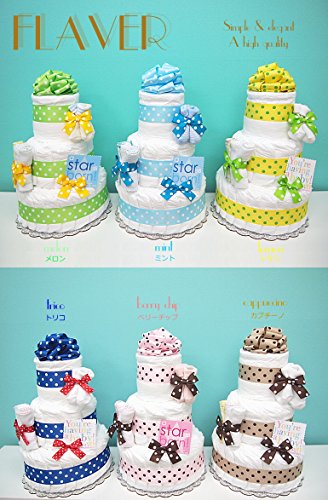 大好評により日本テレビ「ヒルナンデス!」で紹介されたおむつケーキ! たくさんのリピーターのお客様よりご要望いただいておりました。フレーバーおむつケーキの3段ヴァージョンが完成いたしました。 シンプルでエレガントさらに豪華になったワンランク上のおむつケーキ♪ 7色で新登場!! 紙おむつ(パンパース)の枚数が多く、上品なデザインでかわいいと評判の出産祝いギフト! 当店のダイパーケーキデザイナー自慢の作りの綺麗さは先方様にも喜んでいただけます。相手の好み等気にせずに贈れるオムツケーキギフトです。 迷ったらこのおむつケーキで決まり!!! 自信を持ってオススメしております。
