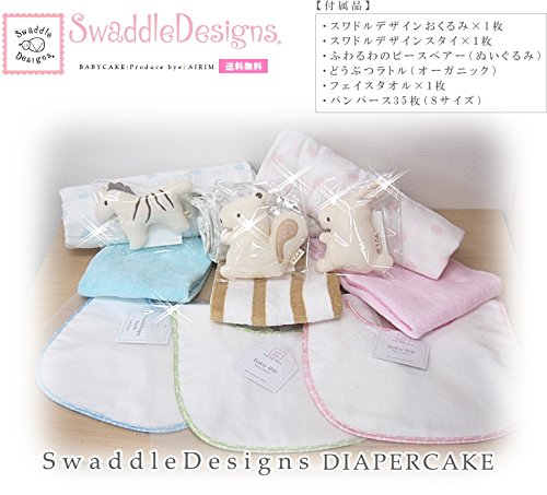 ハリウットセレブに人気★出産祝いスワドルデザインおくるみ&スタイおむつケーキ!オーガニック (Sサイズ[2-5カ月], ブルー) [並行輸入品]