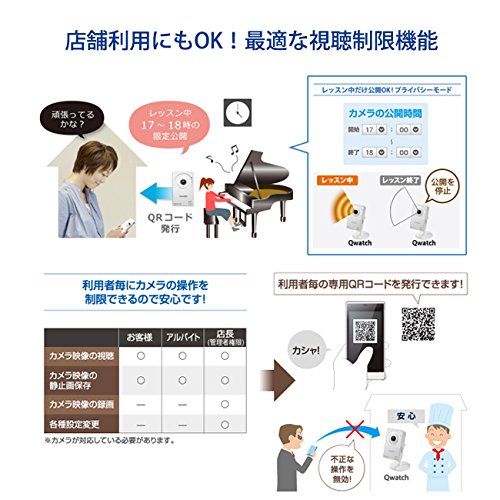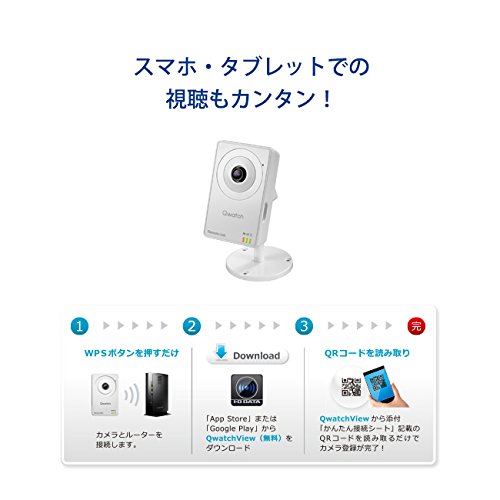 ◆無線LANに対応したネットワークカメラ「Qwatch(クウォッチ)」です。◆専用の無料アプリでスマホやタブレットからカメラ映像を確認できます。◆初心者の方でも安心のエントリーモデルとなります。 / ※本商品は屋内に設置する用途でご利用ください。