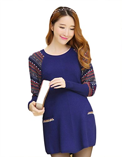 Tresor マタニティ 産前 産後 妊娠 初期 中期 後期 綿 素材 柔らかい生地 ゆったり 長袖 保温性抜群 セーター ポケット付き TRAP-152884 ネイビーXL