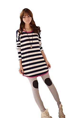 【Tresor】 マタニティ 産前産後 長袖 チュニック ワンピース スパッツ パンツ セットアップ 秋冬 お腹 ゆったり 締め付け無し ボーダー 妊娠初期 中期 後期 キュート 大人気 TRAP-152356 XL