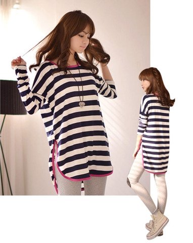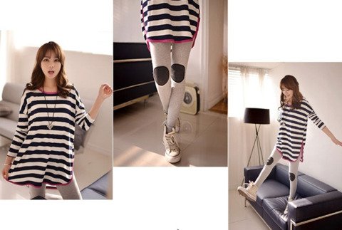 ・【Tresor】 マタニティ 産前産後 長袖 チュニック ワンピース スパッツ パンツ セットアップ 秋冬 お腹 ゆったり 締め付け無し ボーダー 妊娠初期 中期 後期 キュート 大人気 TRAP-152356
