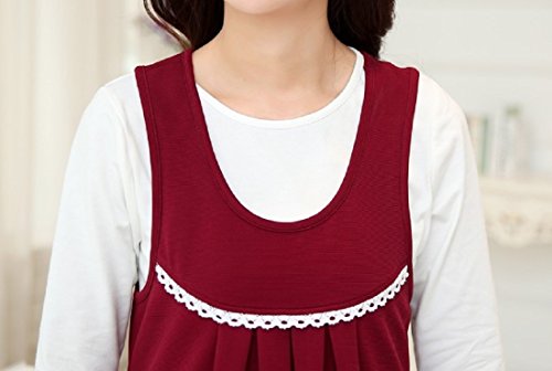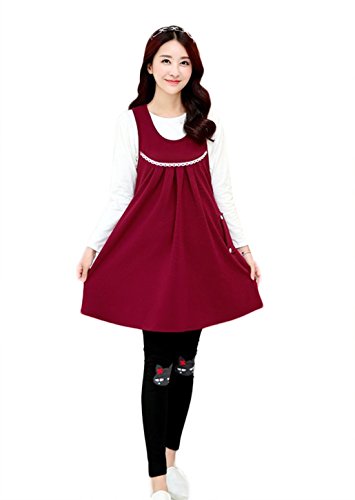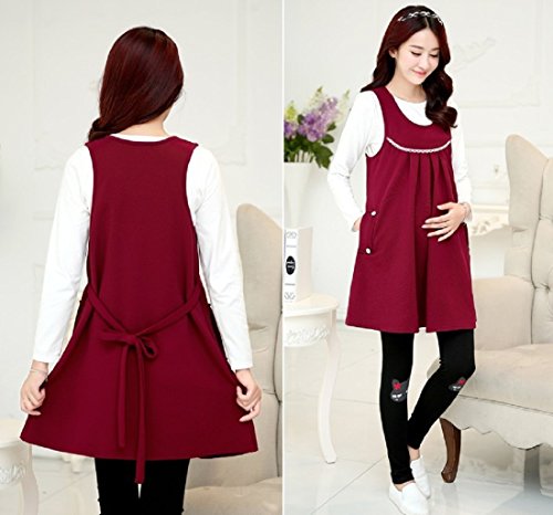 Tresor マタニティ 産前 産後 妊娠 初期 中期 後期 綿 素材 柔らかい生地 ゆったり 長袖 ワンピース 通気性抜群 ポケット付き TRAP-152875 ワインレッドXL