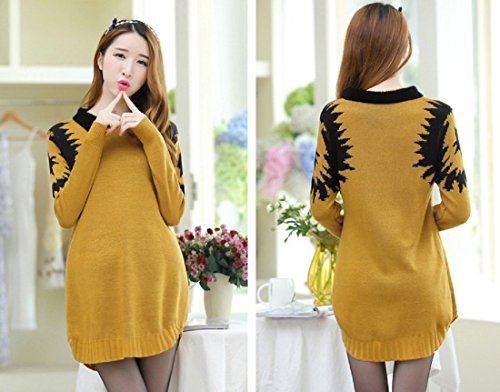 Tresor マタニティ 産前 産後 妊娠 初期 中期 後期 ウール 素材 柔らかい生地 ゆったり 長袖 ワンピース 通気性抜群 伸縮性 TRAP-152881 イエローXL