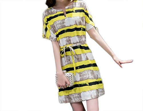 Tresor マタニティ 産前 産後 妊娠 初期 中期 後期 綿 素材 柔らかい生地 ゆったり 半袖 ワンピース 伸縮性いい 紐調節 可能 TRAP-152900 イエローXL