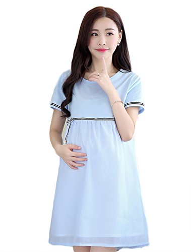 Tresor マタニティ 産前 産後 妊娠 初期 中期 後期 綿 素材 柔らかい生地 ゆったり 半袖 紐調節 可能 ワンピース 保温性抜群 TRAP-152895 ブルーXL