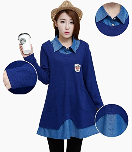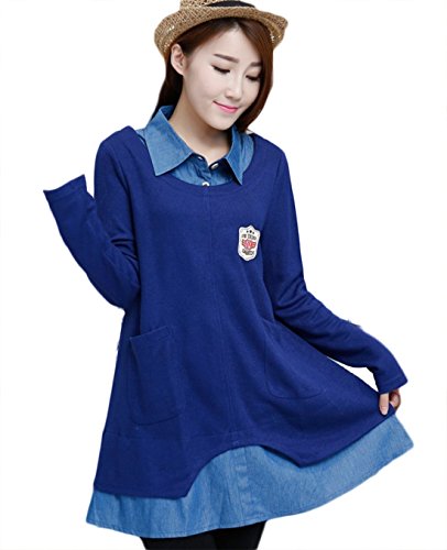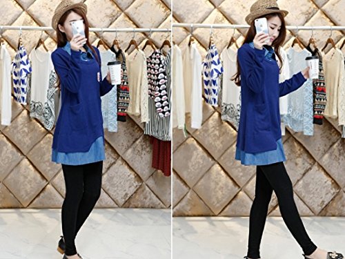Tresor マタニティ 産前 産後 妊娠 初期 中期 後期 綿 素材 柔らかい生地 ゆったり 長袖 伸縮性いい ワンピース 保温性抜群 TRAP-152902 ブルーXL