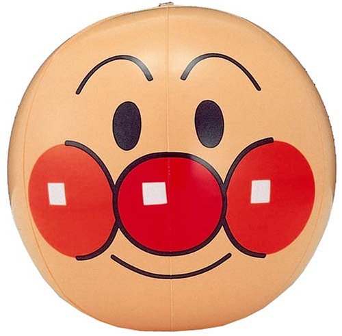 アンパンマンの顔がプリントされたボール。非フタル酸可塑剤使用。サイズはφ350mm。