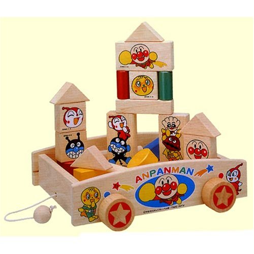 それいけ!アンパンマンシリーズ「アンパンマンはじめてのちびっこつみき」。アンパンマンのキャラクターが印刷された積木セット。印刷もカラフルになってキャラクターもいっぱい。メロンパンナちゃんやドキンちゃんなど、アンパンマンのキャラクターと一緒に楽しく積木遊びができる。車付きの積木箱がセットになっているのでお片づけもラクラク。積木21個と積木箱1個のセット。
