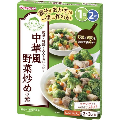 ●【商品説明】●「おやこdeごはん 1歳から 2歳も 中華風野菜炒めの素 120g」は、食材を加えるだけで、フライパンひとつで簡単に家族のおかずが作れる中華風野菜炒めの素です。●化学調味料を使わず、ほたてと鶏がらのうま味をいかし、どんな野菜にもあう中華風味に仕上げました。●大人の方もそのままでおいしく召し上がれます。●1歳から。●2-3人前。●にんじん入り。●【お問い合わせ先】●販売元アサヒグループ食品株式会社 お客様相談室東京都渋谷区恵比寿南2-4-1フリーダイヤル0120-889283●【原産国】●日本●【原材料名・栄養成分等】●名称そうざいのもと●原材料名にんじん、ほたてエキス、砂糖、チキンエキス、しょうゆ(小麦・大豆を含む)、しょうがペースト、食塩、ごま油、米酢/増粘剤(加工でん粉)●栄養成分表示【製品1袋(120g)当たり】エネルギー:63kcal、たんぱく質:1.7g、脂質:1.1g、炭水化物:11.5g、食塩相当量:3.0g【出来上がり子ども1人前(100g)当たり(※)】エネルギー:82kcal、たんぱく質:8.3g、脂質:3.2g、炭水化物...